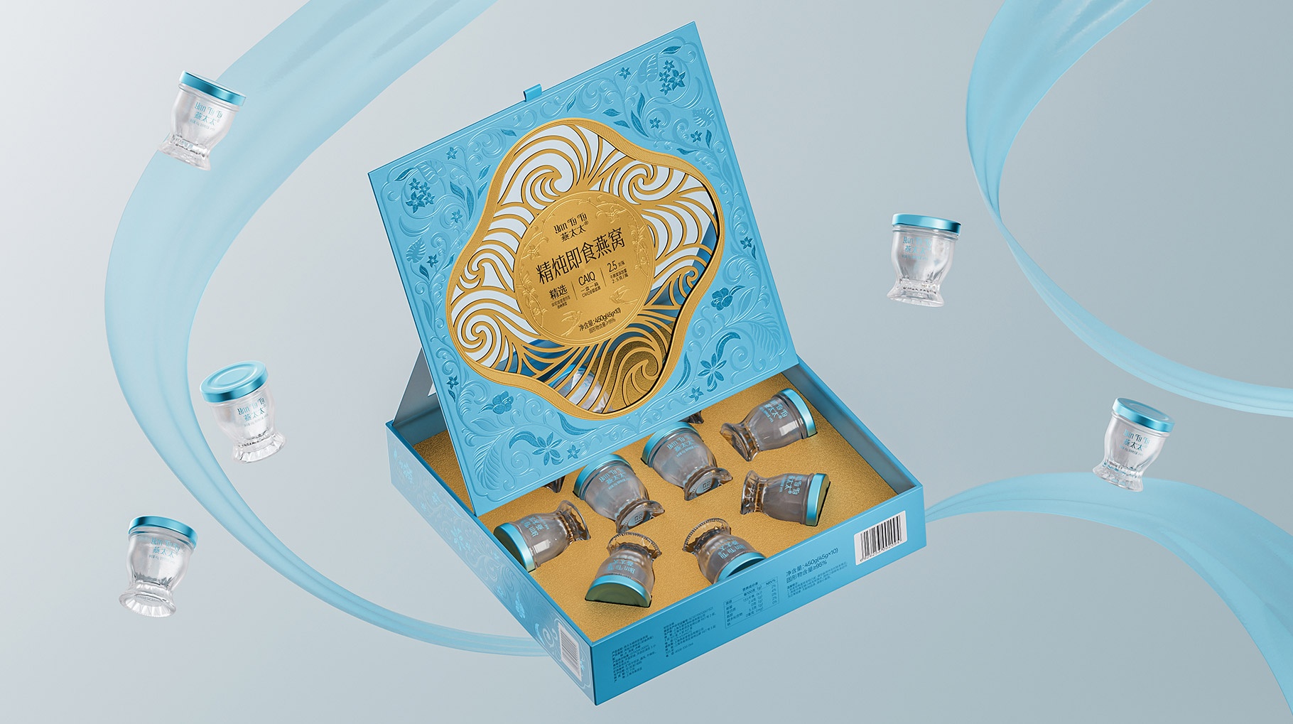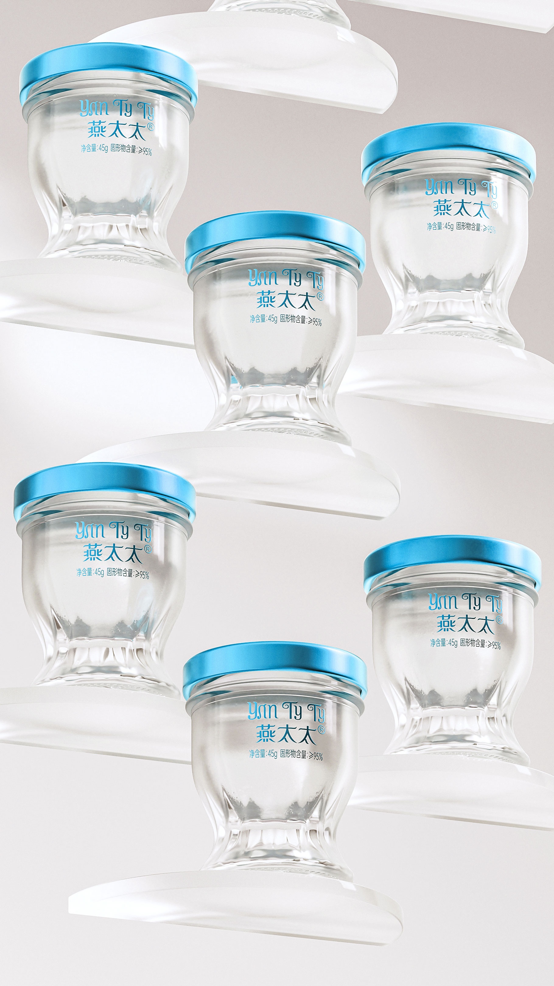 功能細節(jié)上,瓶身采用食品級水晶玻璃與氮氣鎖鮮工藝,確保燕窩品質(zhì);瓶底拋光切面,在光影下折射出琥珀色光澤,暗合傳統(tǒng)滋補文化的貴重屬性。